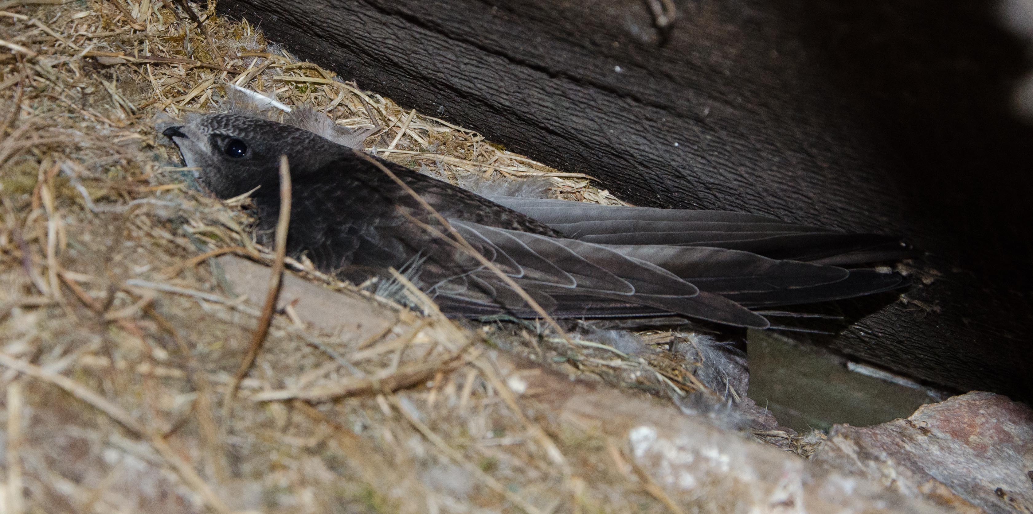 Lovely news. The second chick fledged this morning. Just to summarize. I first started watching this nest during the fist week of June. The first egg was laid on the 22nd of June and the second on the 24th. The first chick hatched on the 12th July and the second on the 15th. Despite some very poor weather fledging on the 22nd and 29th of August was well within the expected range. Following web sites in Bristol and Oxford University Library this has been a bad year for swifts. We usually have 4 active nests but 2 were abandoned this year with only 2 successful nests. I am sure this was this pairs first brood and think they have been exceptional parents in a very challenging year. The parents will feed up for a few days before setting of for southern Africa. The youngsters are already on the way going separately and will probably not see their parents again. They will travel back to England next May then back to Africa then when they return in 2017 may touch the ground for the first time since leaving the nest. The parents will not meet up again until, hopefully, they meet again next May at the same nest. What amazing creatures.