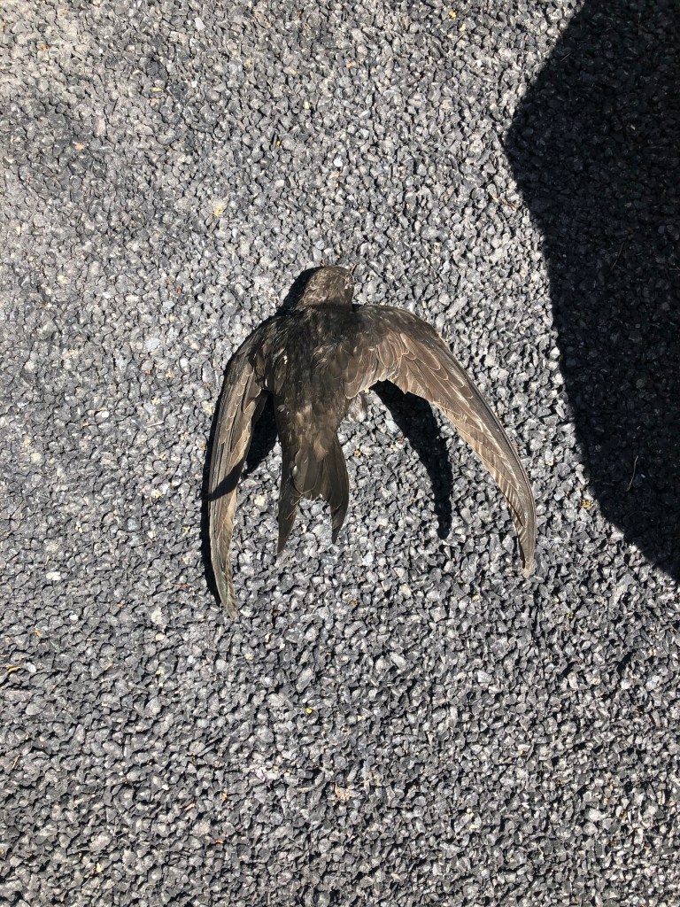 Very sad morning. At about 11am I found a dead swift on the drive. It didn’t appear to be superficially injured so I don’t think it was predated. I think it’s neck may have been broken. I watered plants where I found it late last night so it happened overnight. I wonder if it flew into a house wall. I have been carefully looking at the cameras all day and only this evening saw two swifts in both of the main nests. Not a comfortable day. I have not seen any sign of a swift in the new attic nest. Attached photo of dead swift, clips from both nests.